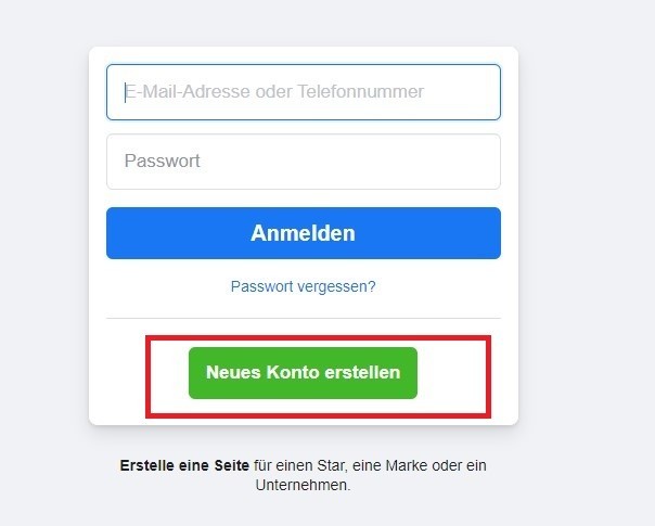 1. Gehe zu facebook.com und klicke auf „Neues Konto erstellen“.
