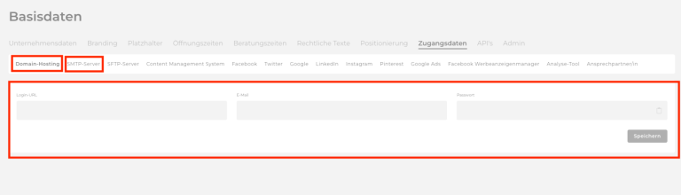 Hier kannst du uns Zugangsdaten oder Ansprechpartner für Social Media und Domainhosting nennen. Damit können wir die Verknüpfungen zu COCO für dich herstellen und in Support-Fällen auch aktualisieren.