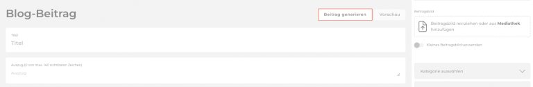 In der Beitragsbearbeitung kannst du über den Button Beitrag generieren einen Beitrag von einer Künstliche Intelligenz erzeugen lassen.