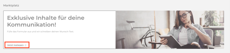 Mit einem Klick auf Jetzt loslegen kommst du zum Formular zur Anfrage von individuellen Inhalten.