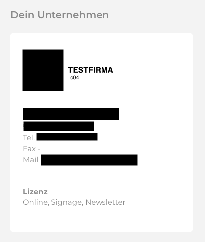Hier siehst du Informationen zu deinem Unternehmen und deiner Lizenz.