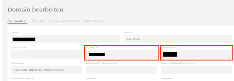 Um das System mit einer Google Analytics Property zu verknüpfen, musst du zunächst die Property-ID und die MESS-ID in COCO eintragen.