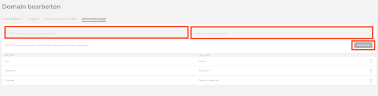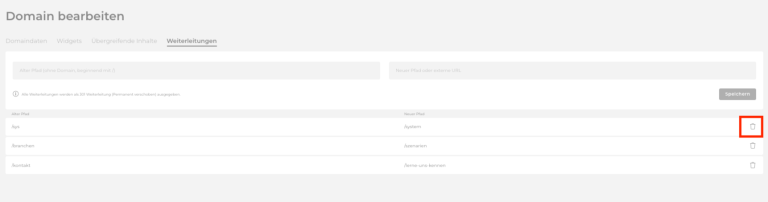 Wird eine Weiterleitung nicht mehr benötigt, kannst du diese durch einen Klick auf das Papierkorb-Icon löschen.
