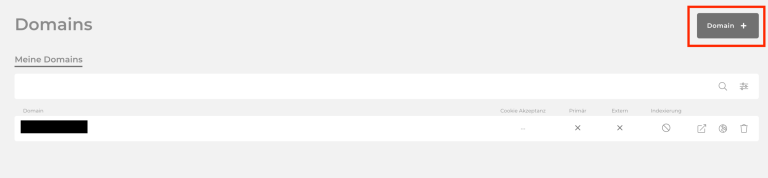 Rufe zur Einrichtung einer neuen Domain in COCO die Einstellungen unter Website und Domains über einen Klick auf Domain+ auf.