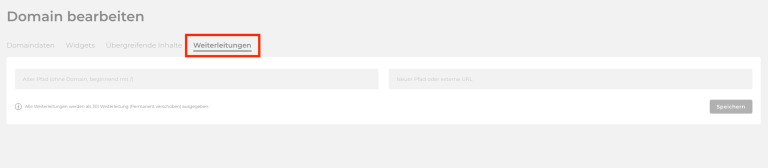 Möchtest du für deine in COCO hinterlegte Domain eine Weiterleitung einrichten, findest du die Einstellungen im Reiter Weiterleitungen.
