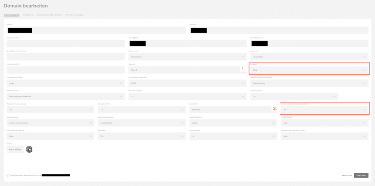 - Indexierung für Suchmaschinen gesperrt: Ja