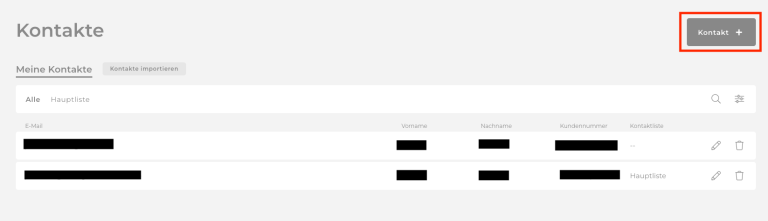 Zum Erstellen eines einzelnen Kontaktes, klicke auf Kontakt+.