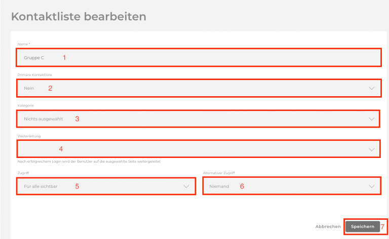 5. Soll der Zugriff auf die Kontaktliste nicht für alle möglich sein, kannst du unter Zugriff den Nutzer mit den primären Rechten hinterlegen.