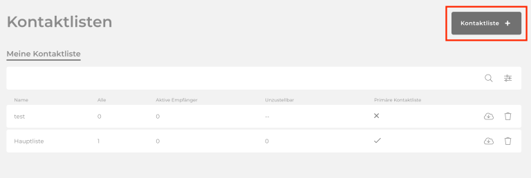 Um eine neue Kontaktliste zu erstellen, klicke auf Kontaktliste+.