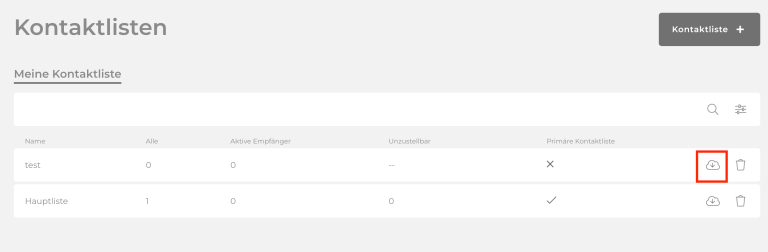 Im Bereich Kontakte unter Kontaktlisten siehst du alle bisher erstellten Kontaktlisten und kannst sie verwalten.