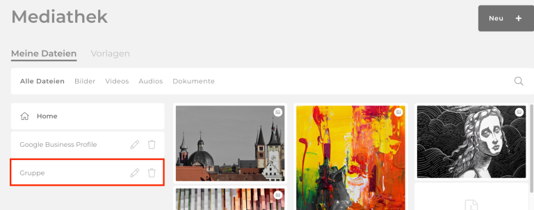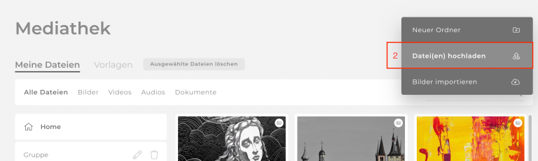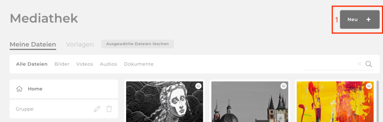 In der Mediathek sind alle Bilder und Dokumente deiner Website gespeichert.