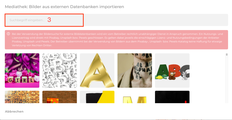 Hast du einmal kein eigenes passendes Bild, kannst du auch eines aus den externen Datenbanken importieren.