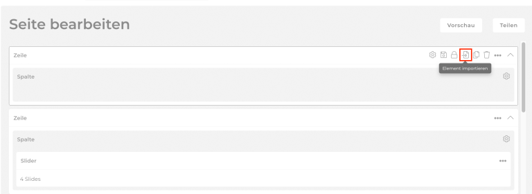 Möchtest du das Element auf dieser Seite editieren, kannst du es in eine leere, einspaltige Zeile importieren.