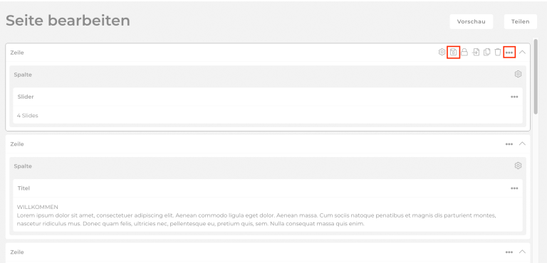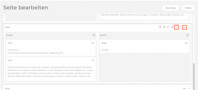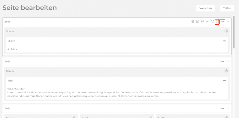 Mit dem Blatt-Icon kannst du ein Modul oder eine Zeile duplizieren.