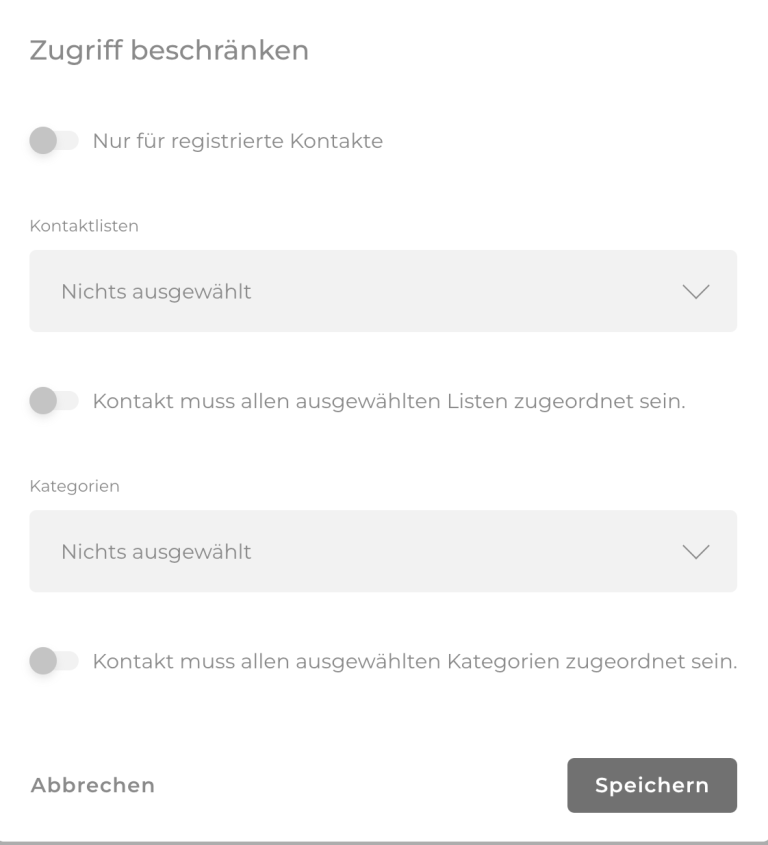 - Nur für registrierte Kontakte sichtbar: Aktiviere diese Option, wenn du die Seite nur im internen Bereich deiner Webseite veröffentlichen möchtest