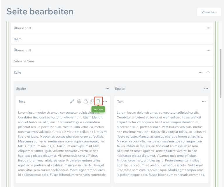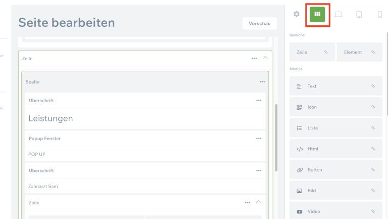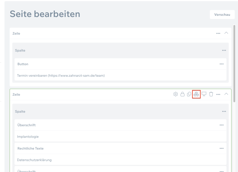 Während der Bearbeitung kannst du dir jederzeit eine Vorschau der Seite über Klick auf den Button ansehen.