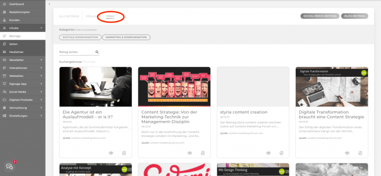 Unter Feeds findest du Beiträge unterschiedlicher Kategorien von verschiedenen Online-Medien.