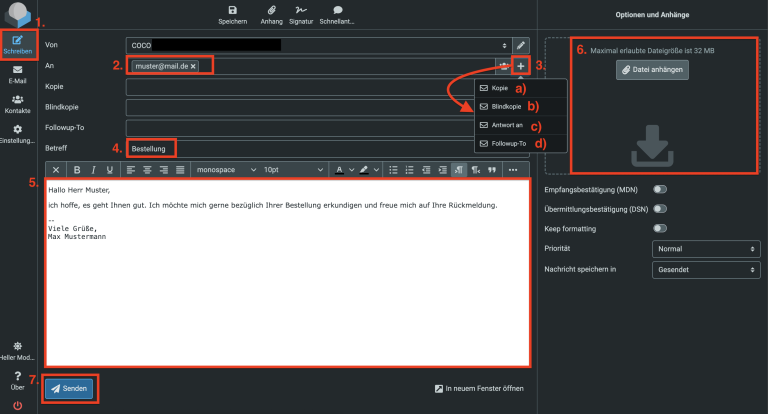 Verfasse sodann deine Nachricht und klicke auf senden.