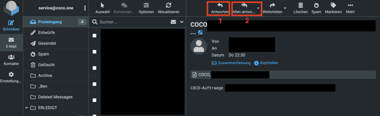 Wähle aus dem Bereich für E-Mails durch Klick die Mail aus, auf welche du antworten möchtest.