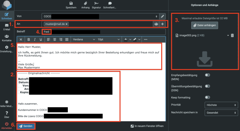 - Deiner Mail wird die Nachricht, die du weiterleiten möchtest angehängt