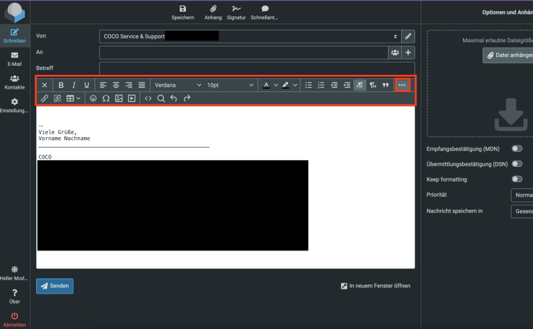 Hast du Mail-Postfächer im Rahmen deiner Lizenz bei uns gebucht, so kannst du deine Mails über den COCO-Webmailer verwalten, versenden und empfangen.