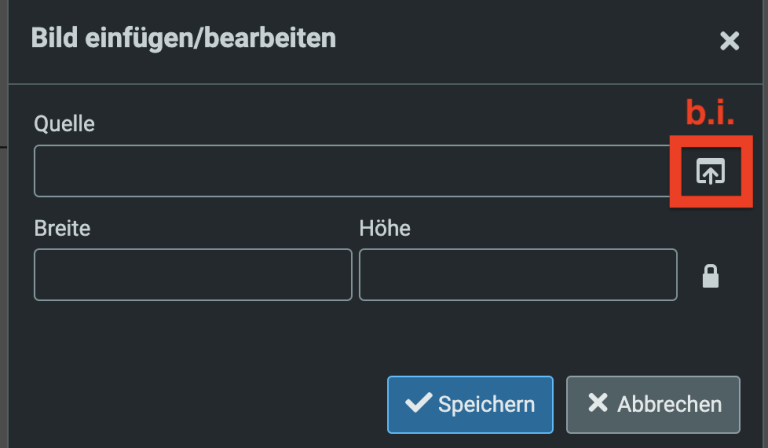 - Um ein Bild im Text einzufügen, kannst du entweder einen Link zum Bild (seine Online-Quelle) platzieren, oder aber ein Bild aus deiner Dateiablage per upload einbetten.