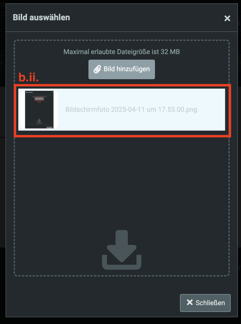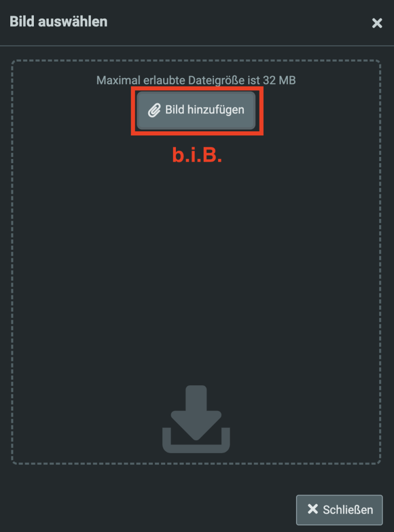 - Klicke auf Bild hinzufügen, wähle die Bilddatei aus deiner Ablage & bestätige mit öffnen
